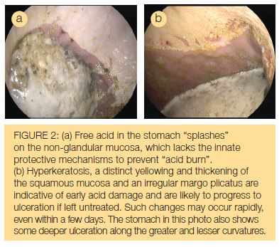 “Unused” free acid in the stomach readily splashes onto the squamous mucosa, especially during exercise, causing “acid burn” (Figure 2). This occurs even during walking exercise.